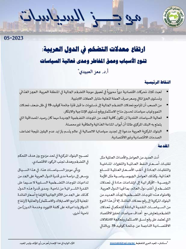 موجز السياسات - "العدد الخامس بعنوان-"ارتفاع معدلات التضخم في الدول العربية: تنوع الأسباب وعمق المخاطر ومدى فعالية السياسات"