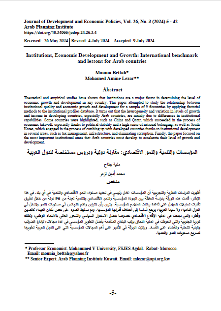مجلة التنمية والسياسات الاقتصادية - المؤسسات والتنمية والنمو الاقتصادي: مقارنة دولية ودروس مستخلصة للدول العربية