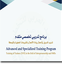 The SMEs Center offers a distinctive set of training programs. It also offers a number of specialized training programs and training diplomas selected to match the requirements and training needs of all target groups. The implementation of these training activities are, however, flexible with regard to time, training material, number of training units and the location of the training sessions.